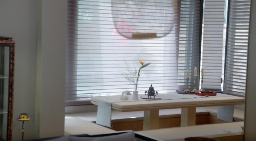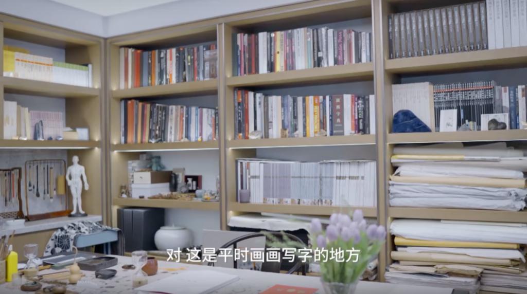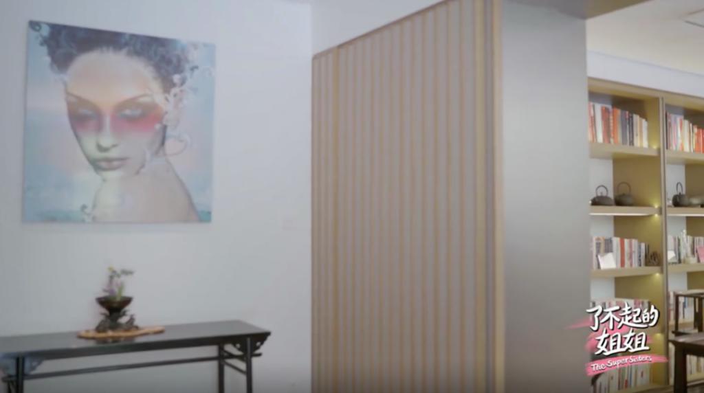 家居风格是极简日式+古典中式的混搭,她喜欢中医、哲学、传统文化,书架上摆着《赵朴初文集》,没事就写写毛笔字啥的。