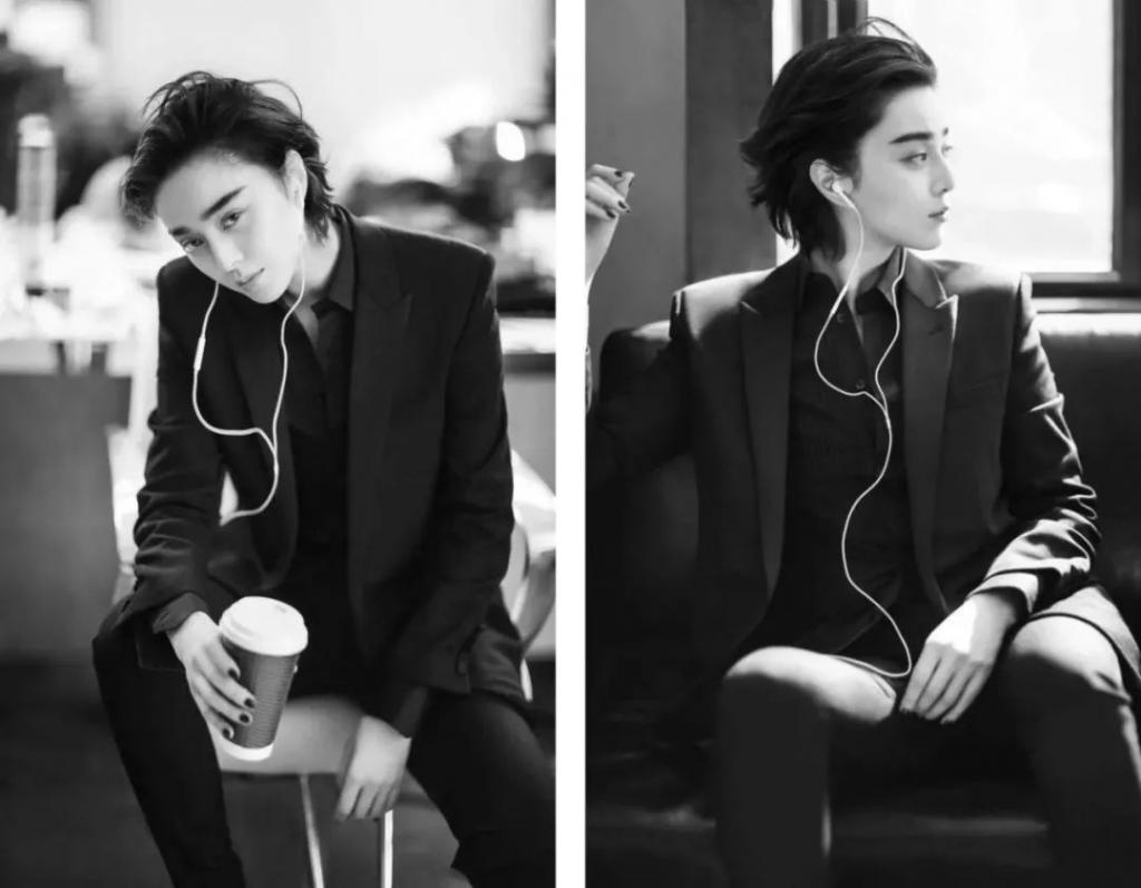 后来,陈漫为她创作了各种各样的风格。比如硬朗的西装照: