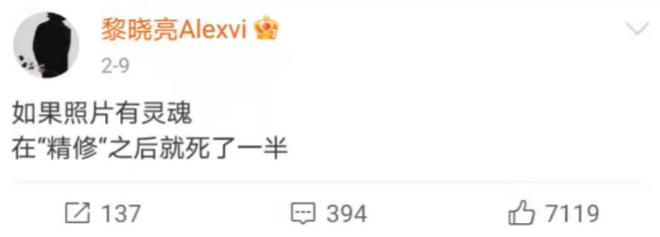 黎晓亮提出的"精修",应该是指陈漫式的"将摄影和艺术混为一谈"的做法。这当然是一个见仁见智的事情,摄影师的风格,与TA本人的经历、性格、思考和世界观有很大关系,风格不同很正常,所以网友们也是对他没在客气的。