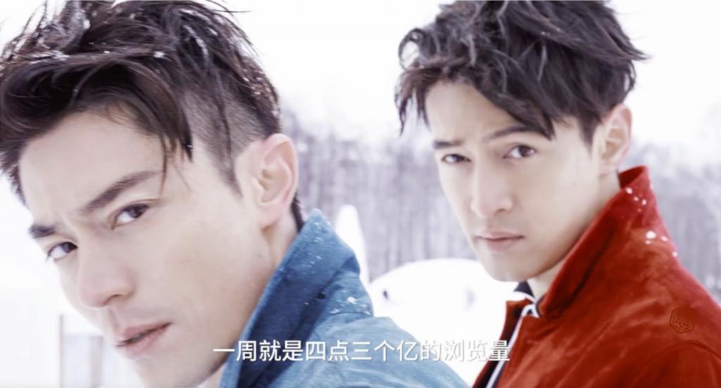 北海道浪漫雪景加上两位大帅哥的CP,没有过多的修饰,"我就让他俩在雪地里玩闹,我去抓",一切尽在不言中,这张封面一周之内有4.3亿点击量,创了历史记录。