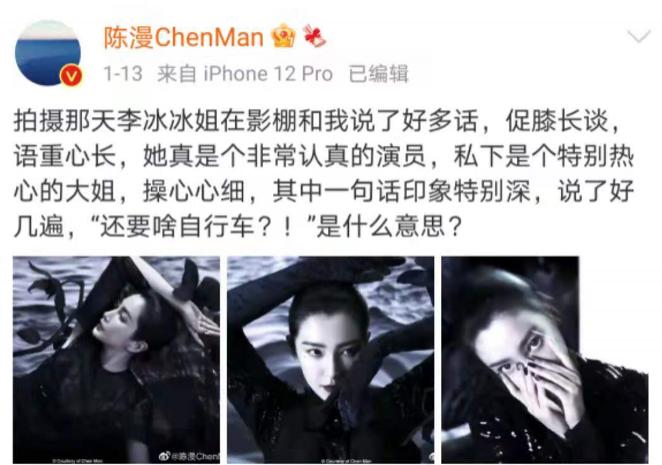 要知道,陈漫的职业生涯中拍过的那么几张得到业界高度认可的照片,范冰冰并不在列,但其中有一张则是2010年的李冰冰。