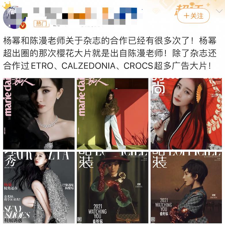 她明显不排斥各种商业合作,反而愿意进行各种资源整合,她让明星舒服,又懂杂志的要求,还会凸显品牌方的调性,还懂得安抚各方粉丝,这不仅仅是一张照片的问题,而应该看到照片背后的功夫。